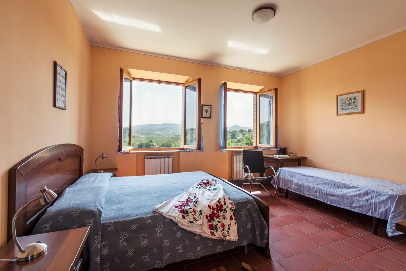 Rosmarino è un grande e bellissimo alloggio su 2 piani, leggermente discostato dagli altri. Dispone di un balcone e di un loggiato privato davanti all’ingresso: offre una vista impagabile su Montepulciano, la Valdichiana e le colline circostanti. Al piano terra si trova l’ampio salone con la cucina e uno sgabuzzino, mentre al piano superiore si trovano un bagno e due camere da letto di cui una con balcone.