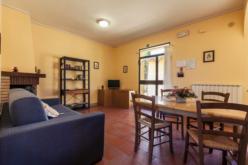 Spaziosi e luminosi trilocali al piano terra con accesso diretto al giardino, composti da 2 camere da letto, 1 bagno con doccia, ampio e luminoso soggiorno con cucina. Le camere affacciano sulla splendida campagna ed il Monte Cetona.
